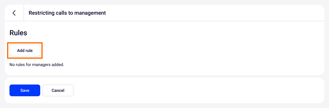 4. When you have set up the rule for restricting calls to the manager, click Add. Check the added restrictions — if you need to edit them, click on the gear icon. If a rule becomes irrelevant, you can delete it by clicking the trash can icon.