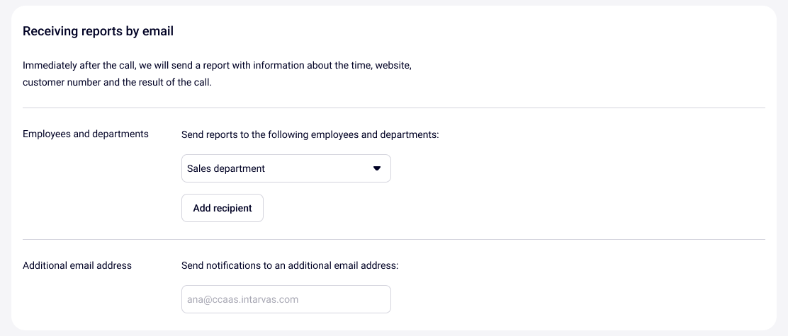 8. You can receive reports on each call requested using the callback widget. To do this, select which of the employees (or departments) your Cloud PBX will send these reports to.