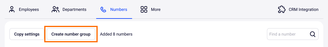 1. Go to the Settings section, the Numbers tab. Click the Create number group button.