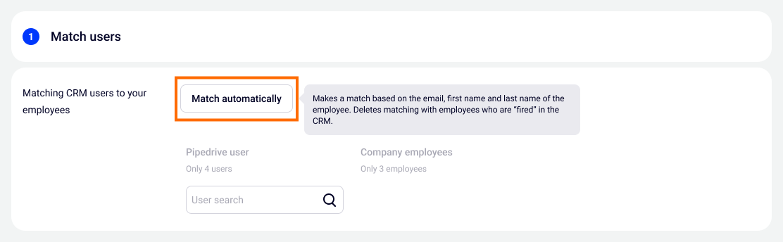 In the Pipedrive integration settings in Cloud PBX, go to the Match users section.