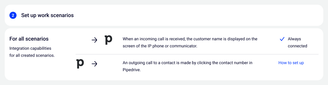 Once you have set up all the necessary scenarios, start using the Pipedrive and Cloud PBX Integration.