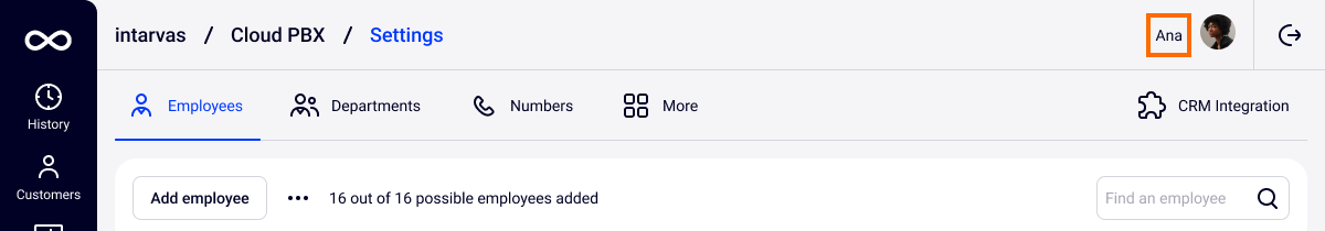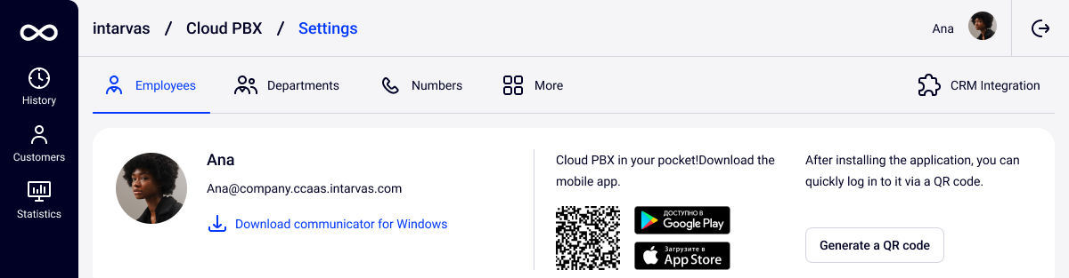 The possibilities of the Cloud PBX personal account do not depend on the access level. Everything described below is set up the same for administrators, users and restricted users.