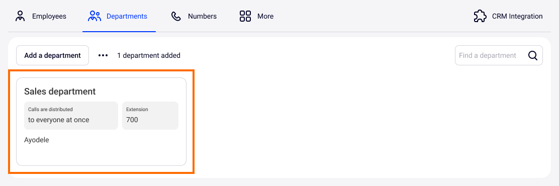 1. Click a department for which customers you want to configure queue callbacks.