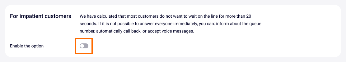 2. Find and enable the For impatient customers option at the bottom of the settings.