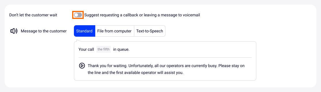 You can offer your customers to request a callback if they don’t want to stay on the line. In this case, a caller retains their position in a queue, and once one of the department employees becomes available, the system will first call the employee and then the customer.