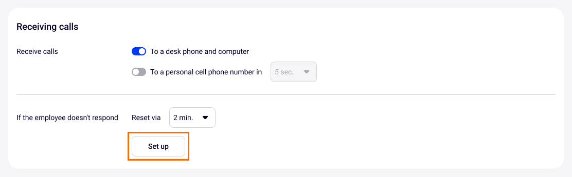 2. In the employee profile settings, scroll down to the Receiving calls section. Find the If the employee doesn’t respond section.