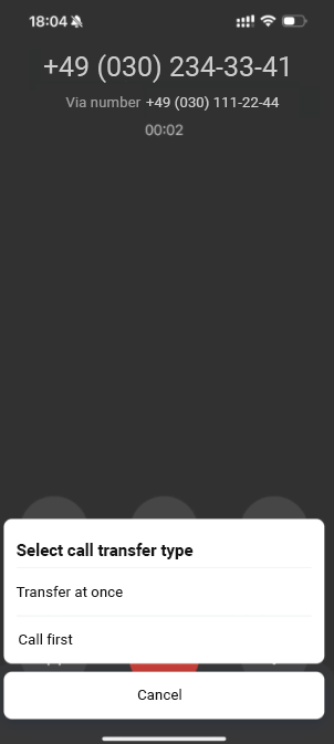 - If you chose to transfer the call at once, the customer will be transferred to the selected colleague, and your call will be finished.