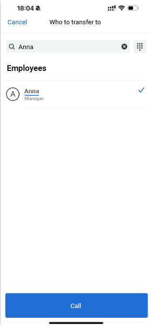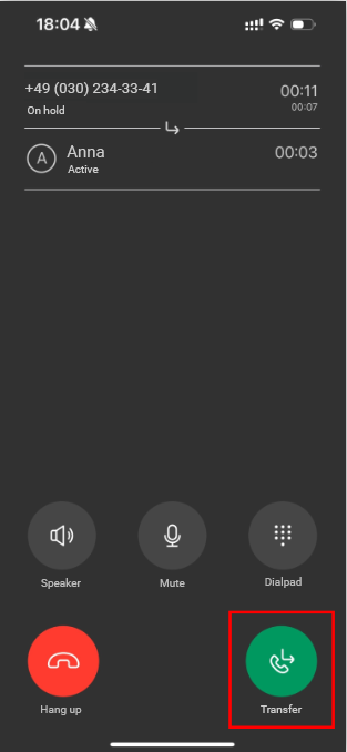 4. If the colleague is ready to take the call from the customer, tap the Transfer button. The call will be transferred, and your call will be finished.